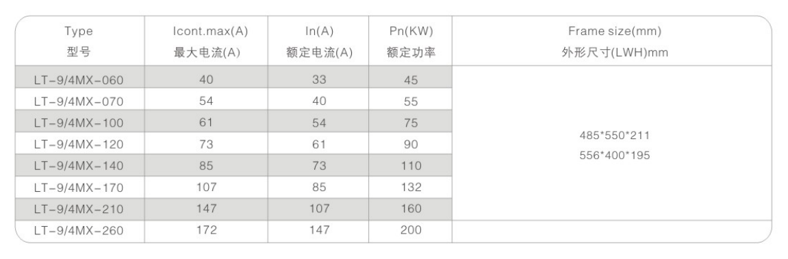 LT系列采煤机专用变频器是一款小巧紧凑的传动单元,功率范围从重载应用的37KW至200KW的连续负载应用,有多种不同外形尺寸可以供用户选用,并可以根据用户的需求单独设计外形尺寸,每一种外形都是性能、尺寸和重量的优化设计。