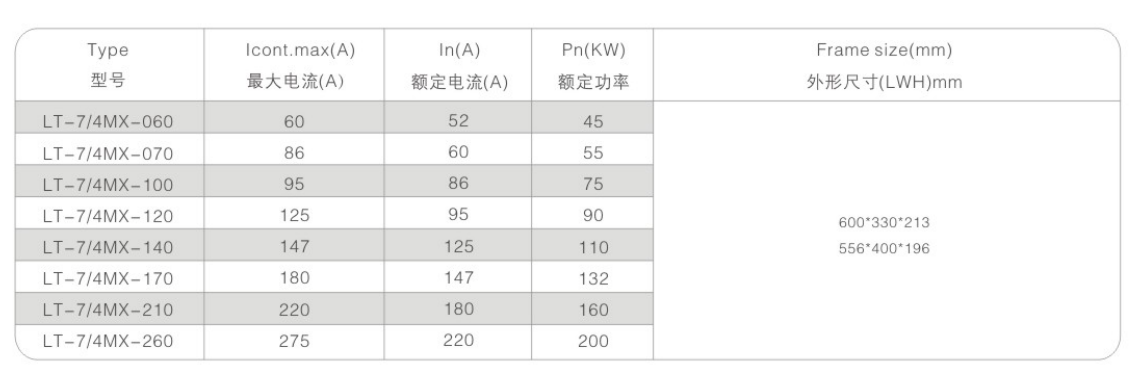 LT系列采煤机专用变频器是一款小巧紧凑的传动单元,功率范围从重载应用的37KW至200KW的连续负载应用,有多种不同外形尺寸可以供用户选用,并可以根据用户的需求单独设计外形尺寸,每一种外形都是性能、尺寸和重量的优化设计。
