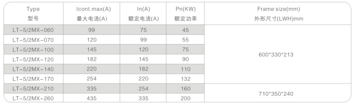 LT系列采煤机专用变频器是一款小巧紧凑的传动单元,功率范围从重载应用的37KW至200KW的连续负载应用,有多种不同外形尺寸可以供用户选用,并可以根据用户的需求单独设计外形尺寸,每一种外形都是性能、尺寸和重量的优化设计。