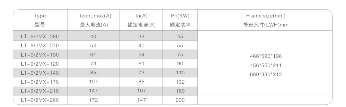 LT系列采煤机专用变频器是一款小巧紧凑的传动单元,功率范围从重载应用的37KW至200KW的连续负载应用,有多种不同外形尺寸可以供用户选用,并可以根据用户的需求单独设计外形尺寸,每一种外形都是性能、尺寸和重量的优化设计。